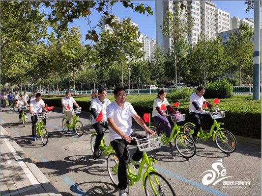為倡導綠色文明出行,傳播“低碳生活、綠色出行、文明出行”的生活理念,提升市民參與環(huán)保行動的積極性,進一步促進城市生態(tài)和諧發(fā)展,9月22日由濰坊市城市管理局、濰坊市市政公用事業(yè)服務(wù)中心主辦,常州永安公共自行車運營有限公司濰坊分公司承辦的2019年“世界無車日”慶祝新中國成立70周年騎行活動暨第三代公共自行車投放儀式在人民廣場成功舉辦,共計150余位熱心市民參加了本次主題騎行活動,并集體合唱《歌唱祖國》和《義勇軍進行曲》,慶祝新中國成立70周年。