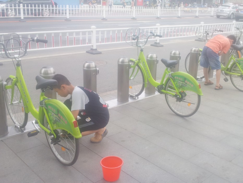 公園巷小學四一班學生利用暑假業(yè)余時間,去古彭廣場義務勞動擦洗公共自行車,這種優(yōu)良的美德值得每一位市民學習。