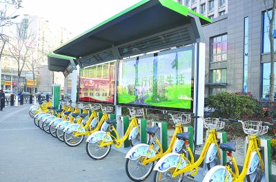 重點方便市民短距離的交通出行和換乘,站點主要設置在道路兩側,以交通樞紐站、商貿中心、各類院校、住宅小區(qū)、行政辦公、休閑公園、風景旅游區(qū)等人流集中的公共服務設施周邊為重點。中心城區(qū)300米左右設置一個站點,外圍區(qū)域保持500米左右一個站點,2014—2015年已經完成416個站點,全市投放 8700多輛自行車。