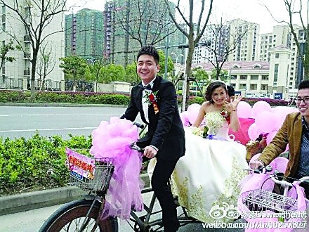 上一個(gè)雙休日,住在蘇州工業(yè)園區(qū)中海國(guó)際社區(qū)的網(wǎng)友“繆繆ssweetheart”因?yàn)橐粡埢槎Y圖片,而在微博上引來(lái)了“圍觀”,原因不僅是新郎新娘的婚車用上了三輪車,而且連送親的隊(duì)伍每人都騎上了一輛綠色的公共自行車。這場(chǎng)綠色、低碳、環(huán)保的婚禮不僅踐行了“綠色出行”的理念,同時(shí)他們這一創(chuàng)新的婚禮形式也成為朋友間的時(shí)尚美談。